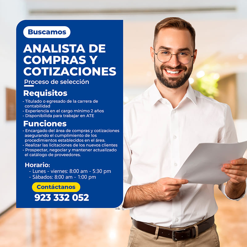 - Encargado del área de compras y cotizaciones asegurando el cumplimiento de los procedimientos establecidos en el área.