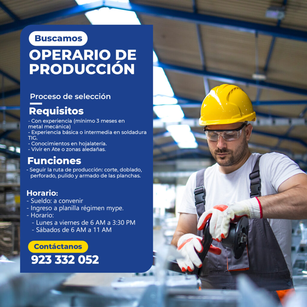 - Con experiencia (mínimo 3 meses en metal mecánica)